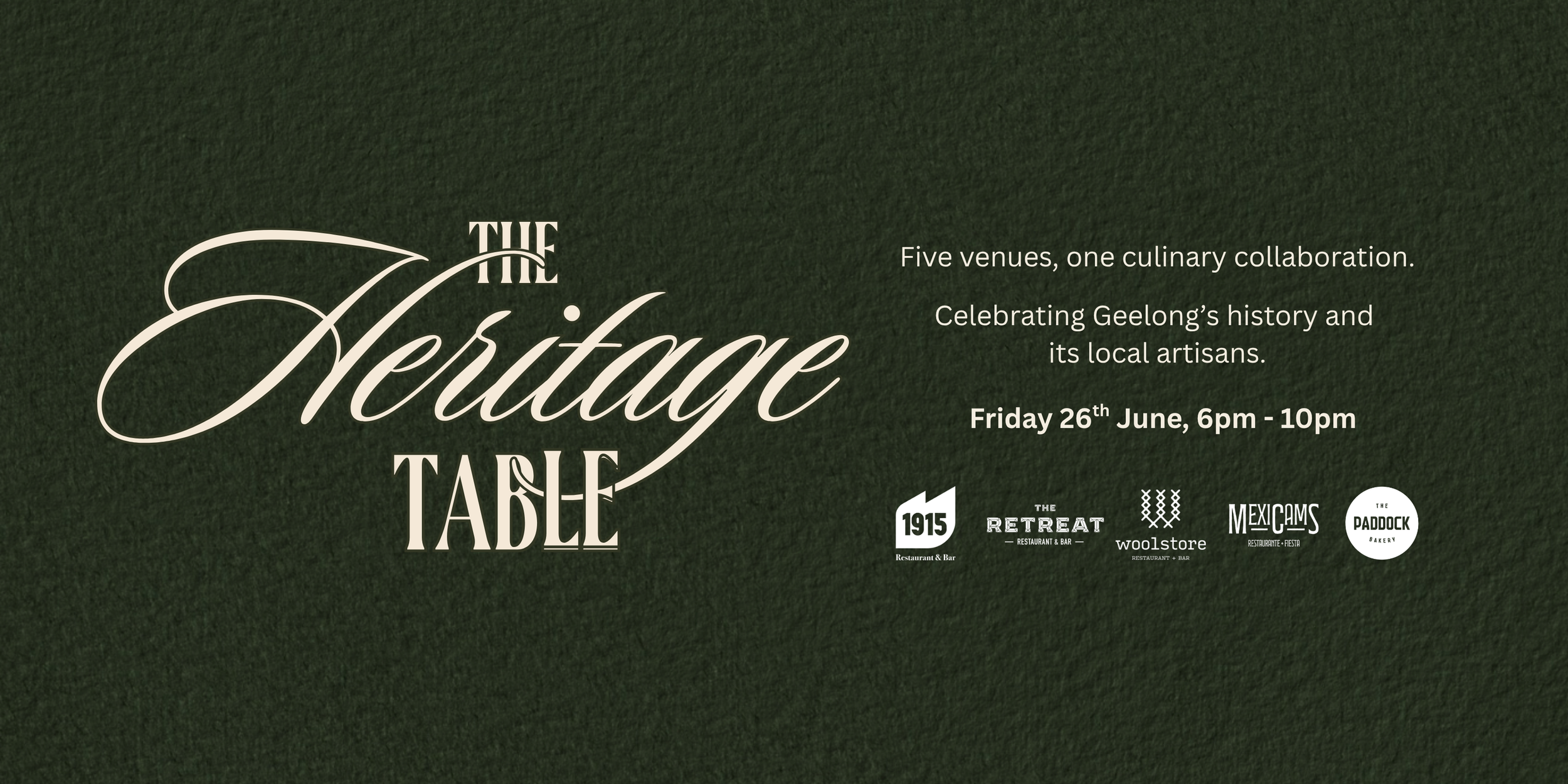 As part of Tastes of Greater Geelong, Hamo Hospitality presents The Heritage Table, an all inclusive dining collaboration bringing together five of our most iconic spaces, from the Federal Mills precinct to the Woolstores and the Barabool Post Office.